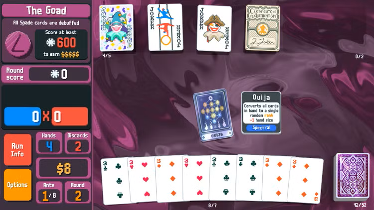 Combine combinações válidas de poker com cartas únicas Joker para criar diversas sinergias e composições. Ganhe fichas suficientes para derrotar os blindes imprevisíveis, enquanto descobre mãos e baralhos bónus escondidos à medida que avança. Vai precisar de todas as vantagens que conseguir para alcançar o boss blind, vencer o último ante e garantir a vitória.