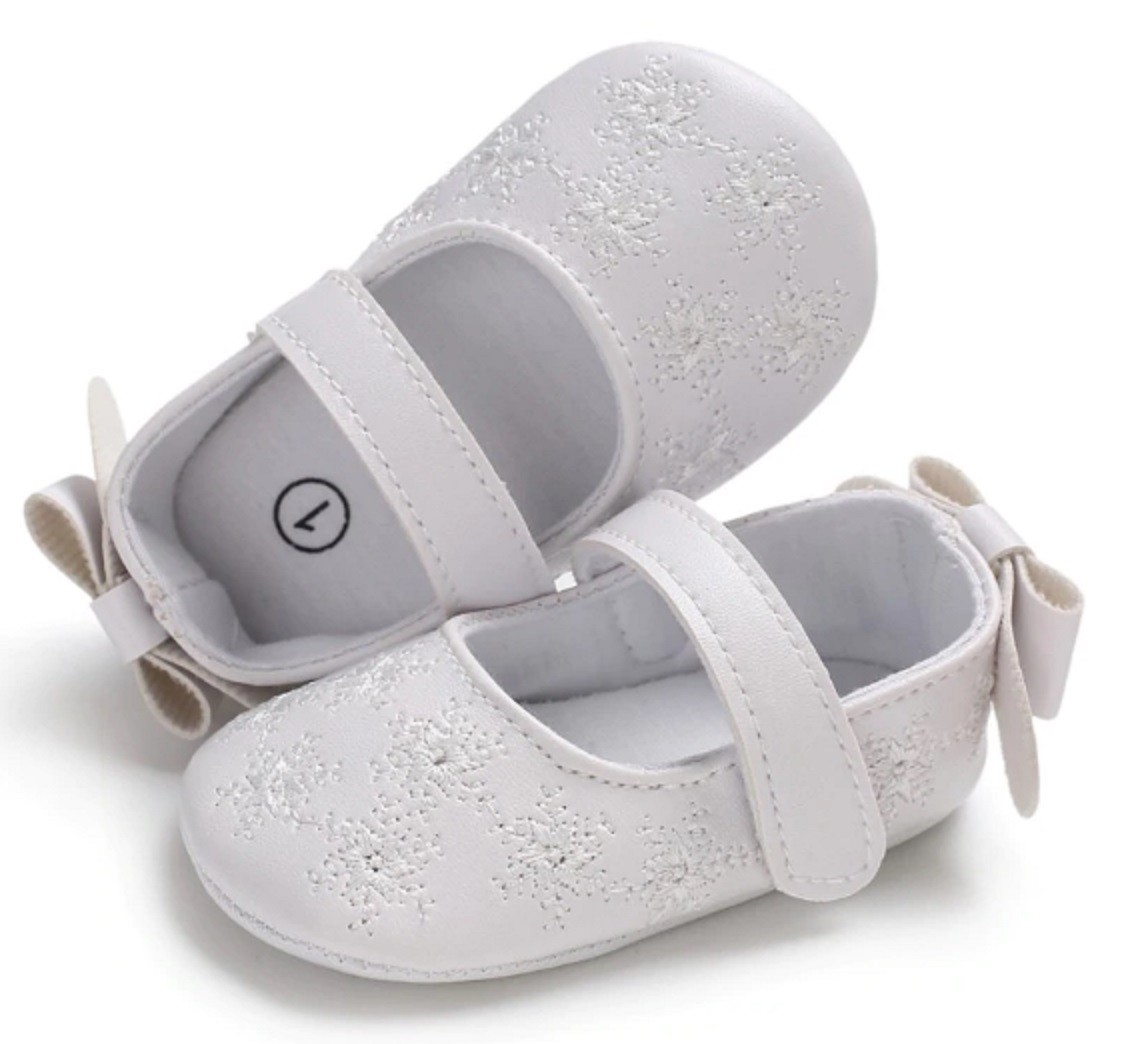 As balerinas de menina decoradas com flocos e laço vão encantar as pequenas vaidosas!
