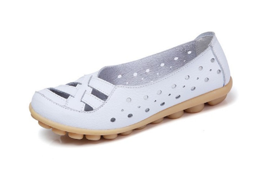 Estas balerinas com furos são a escolha ideal para dias de verão. As balerinas são fáceis de calçar e você pode sair.