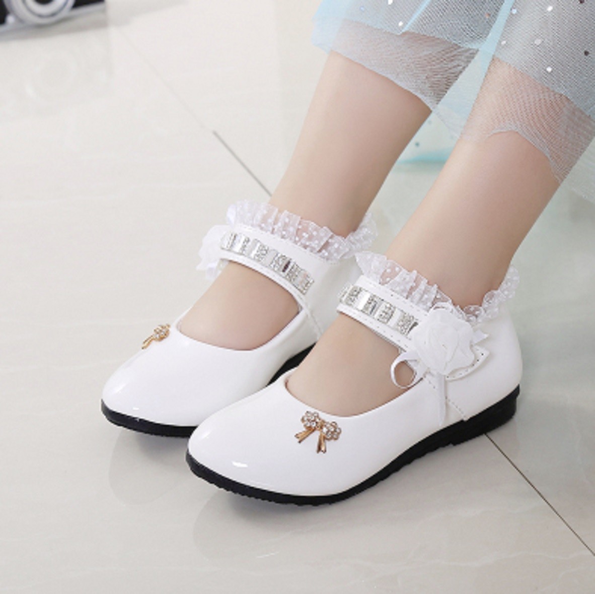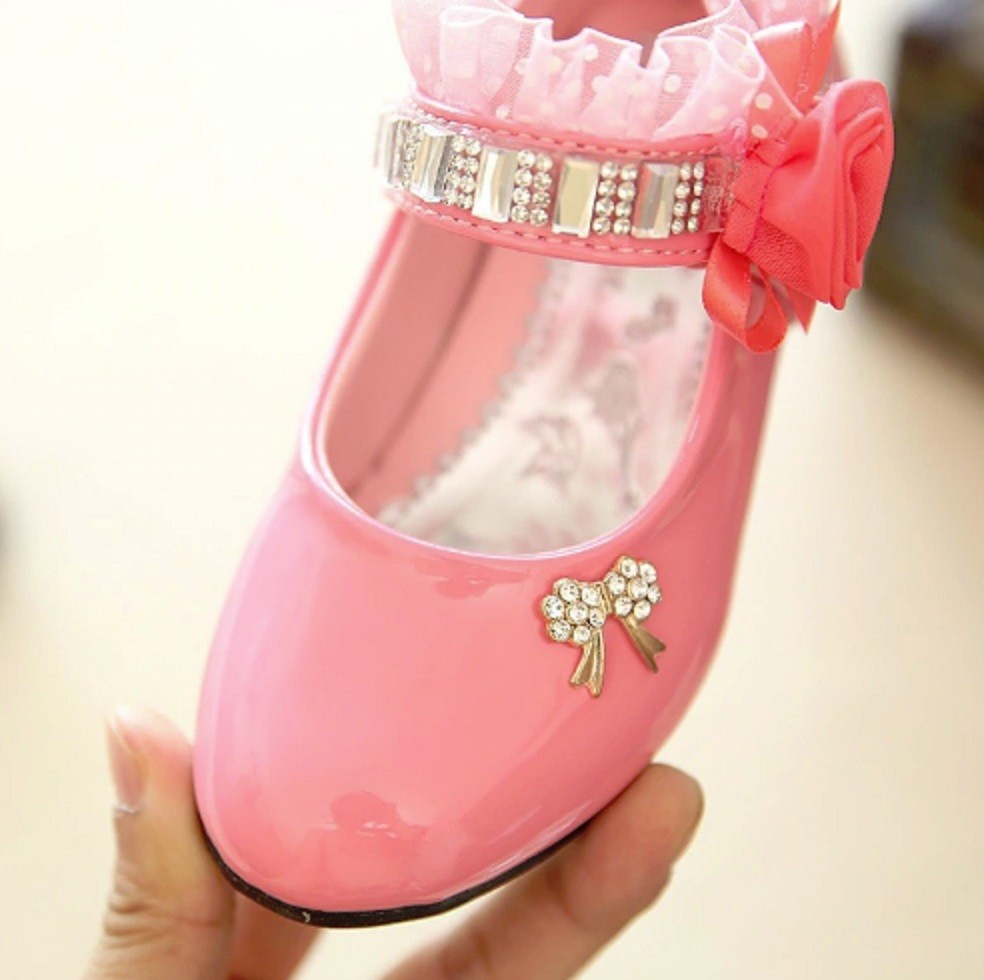 Balerinas para meninas decoradas com pedras, rendas e uma rosa que todas as jovens vão adorar.