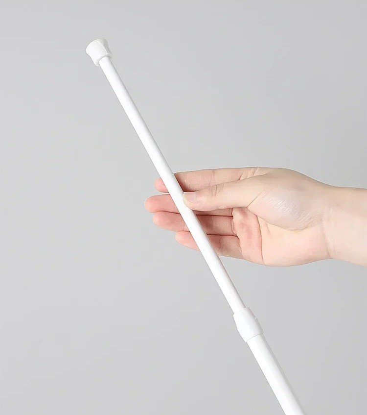 Barra telescópica de apoio com mola e fácil instalação sem perfuração. Estrutura robusta para cortinas leves, têxteis e uso doméstico. Descrição completa