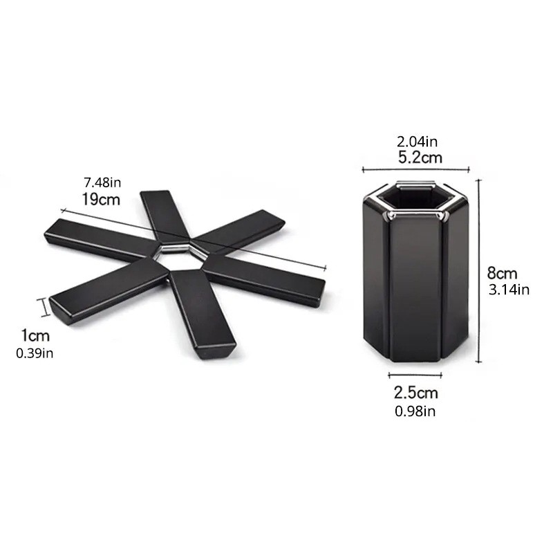 Esta base dobrável para panelas e frigideiras é um auxiliar indispensável em qualquer lar. Graças ao material plástico resistente e à sua construção prática, oferece proteção fiável a mesas, bancadas de cozinha ou mesas de jantar contra danos causados por altas temperaturas. A base é dobrável, o que significa que pode ser facilmente armazenada e ocupa quase nenhum espaço quando não está a ser utilizada.