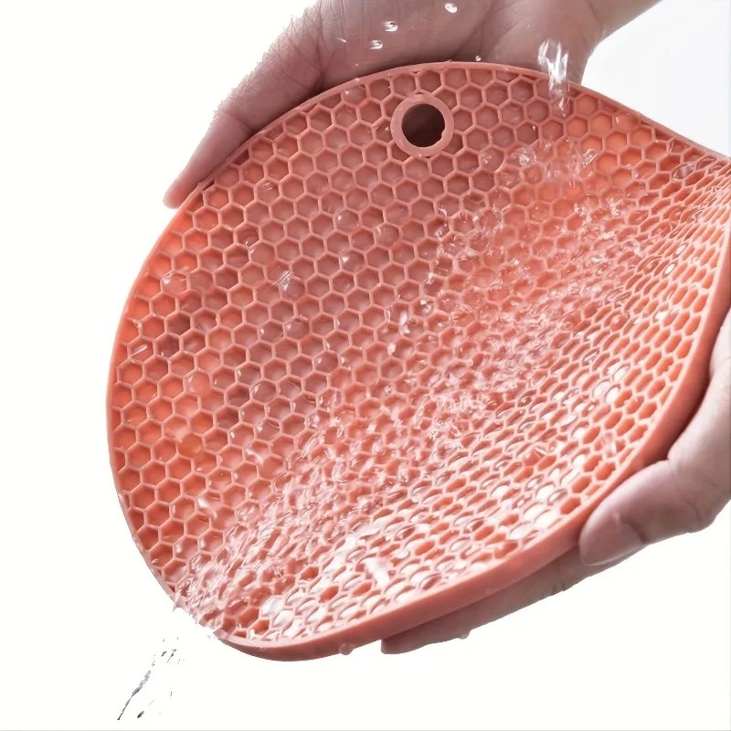 Base de silicone resistente que protege a bancada da cozinha de recipientes quentes, é antiderrapante, fácil de limpar e adequada para uso diário. Descrição completa