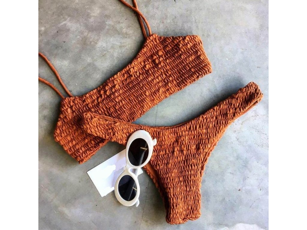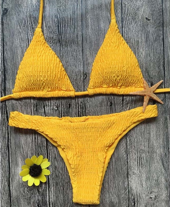 Seja estilosa com este biquíni de malha no estilo brasileiro.