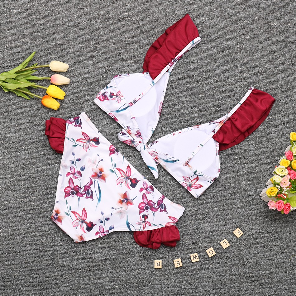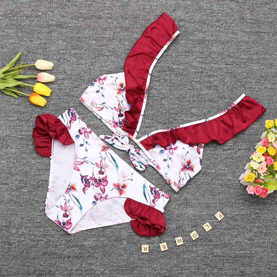 Biquíni feminino floral com folhos