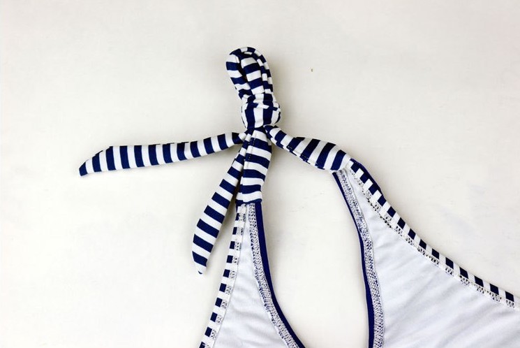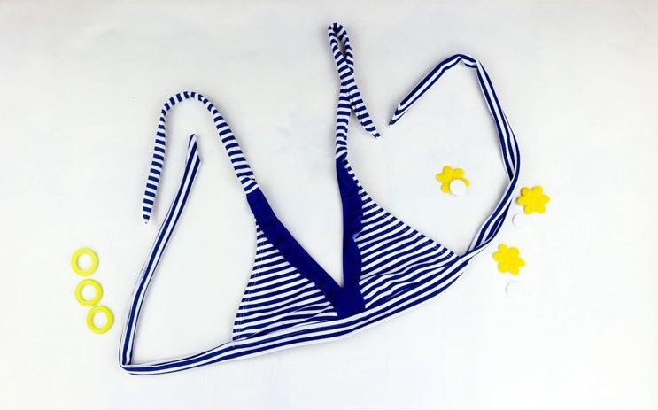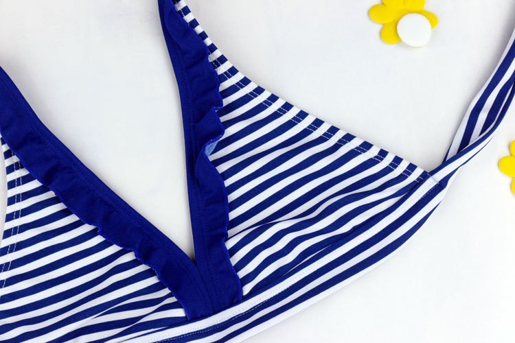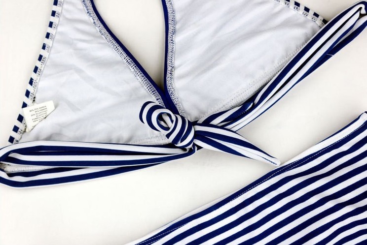Belo biquíni de dois peças com padrão riscado é uma ótima escolha para qualquer jovem senhora!