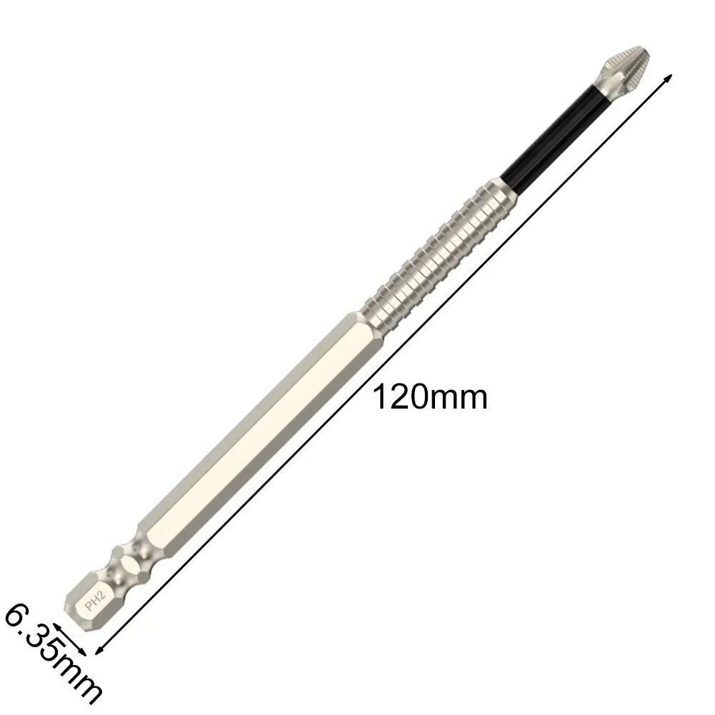 Bit PH2 antideslizante de 120 mm com corpo longo e cabeça estriada para aparafusamento profundo e preciso em locais de difícil acesso