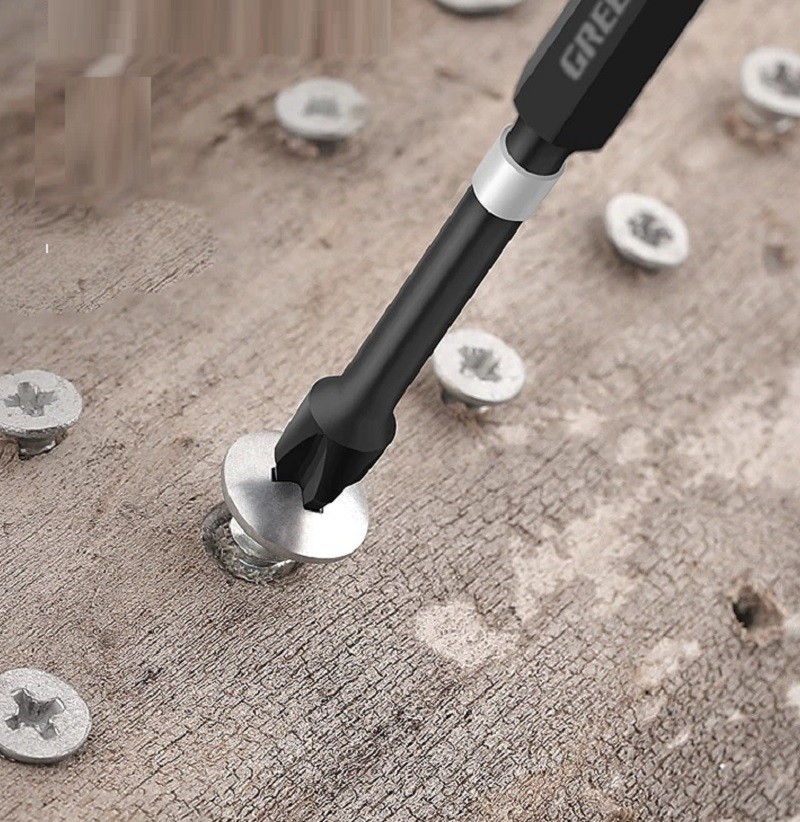 A embalagem contém bits nas dimensões de 50 e 90 mm. Com este conjunto terá tudo o que precisa para realizar o trabalho corretamente. Fortes ímãs garantem uma ligação estável aos parafusos. Estes bits duráveis e fiáveis asseguram que os seus projetos sejam executados de forma perfeita.