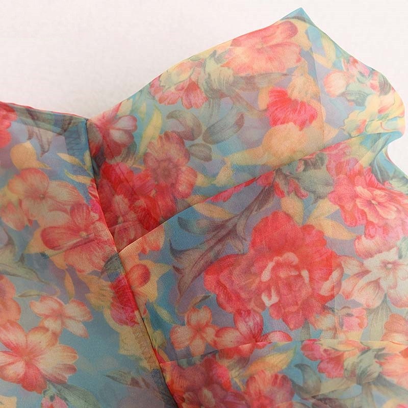 Blusa elegante com estampado de flores coloridas.
