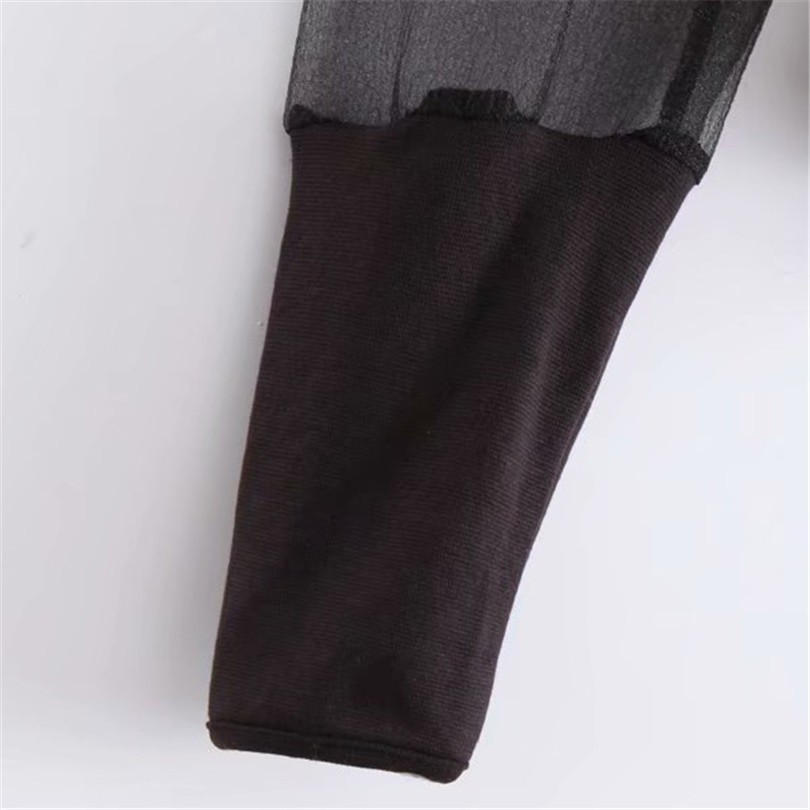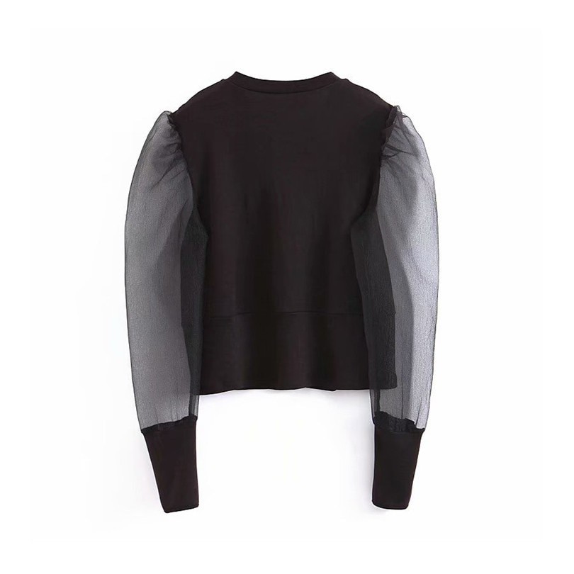 Blusa preta com mangas transparentes