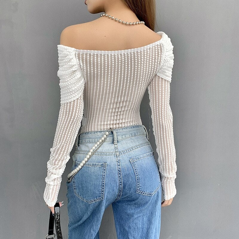 Body de malha feminino com ombros à mostra B787
