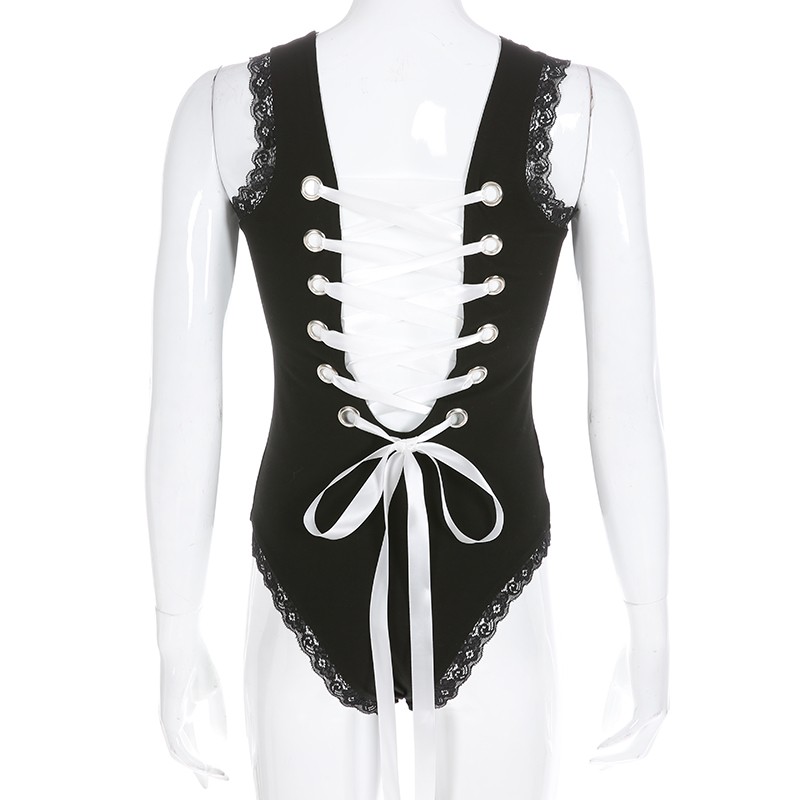 Body de renda feminino com atilhos