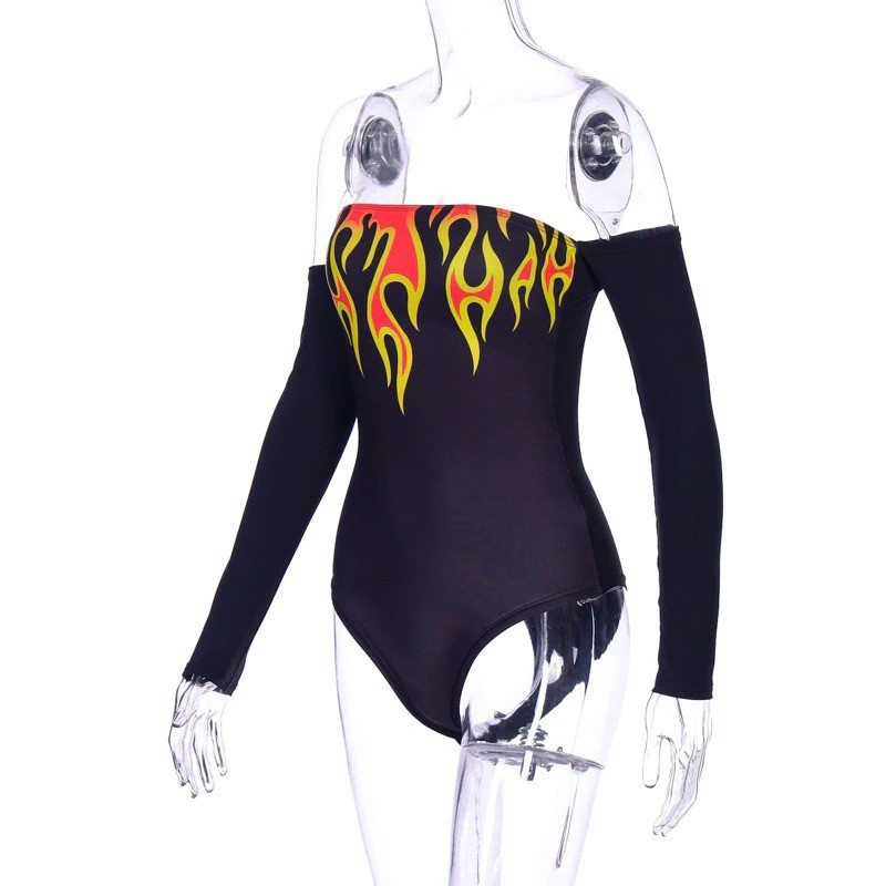 Body feminino com motivo de chamas