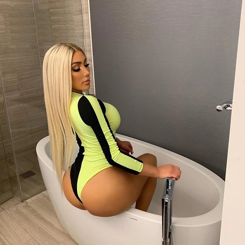 Body neon feminino com mangas longas