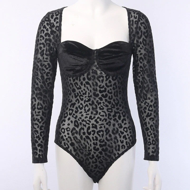 Body preto de leopardo para senhora