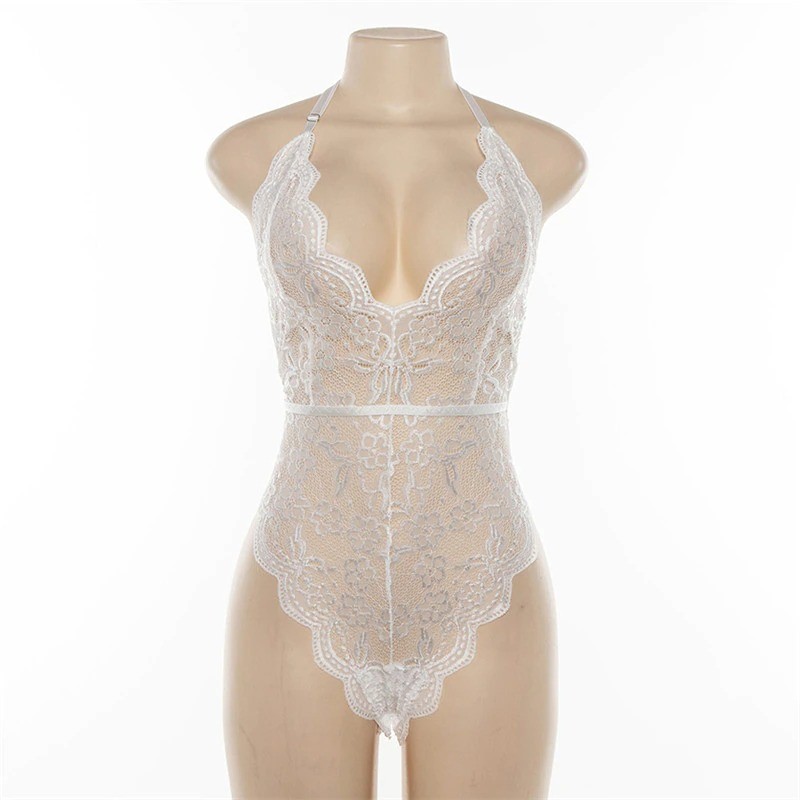 Body rendado feminino com decote profundo