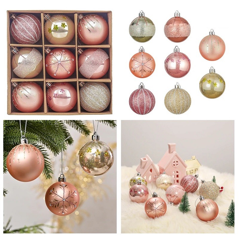 O conjunto de bolas de Natal contém 9 bolas em 8 designs diferentes. Cada bola é feita de plástico de qualidade e tem 6 cm de diâmetro. São o que precisa para entrar no espírito festivo!