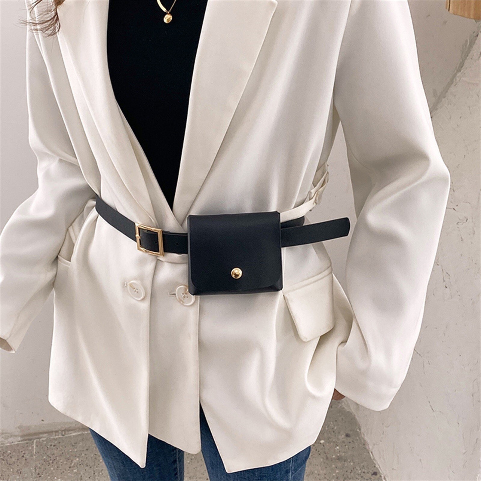 Bolsa de cintura de couro para senhora