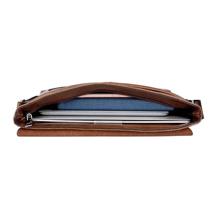 Esta bolsa de couro atende a tudo o que um homem espera de um acessório de moda moderno e funcional. É elegante, espaçosa e confortável de usar, seja em uma reunião de negócios, na cidade ou em viagens. Material de qualidade e acabamento preciso garantem longa durabilidade mesmo com uso diário. Design versátil complementa estilos formais e informais sem compromissos. Se procuras uma bolsa estilosa e funcional com um toque profissional, acabaste de encontrá-la.