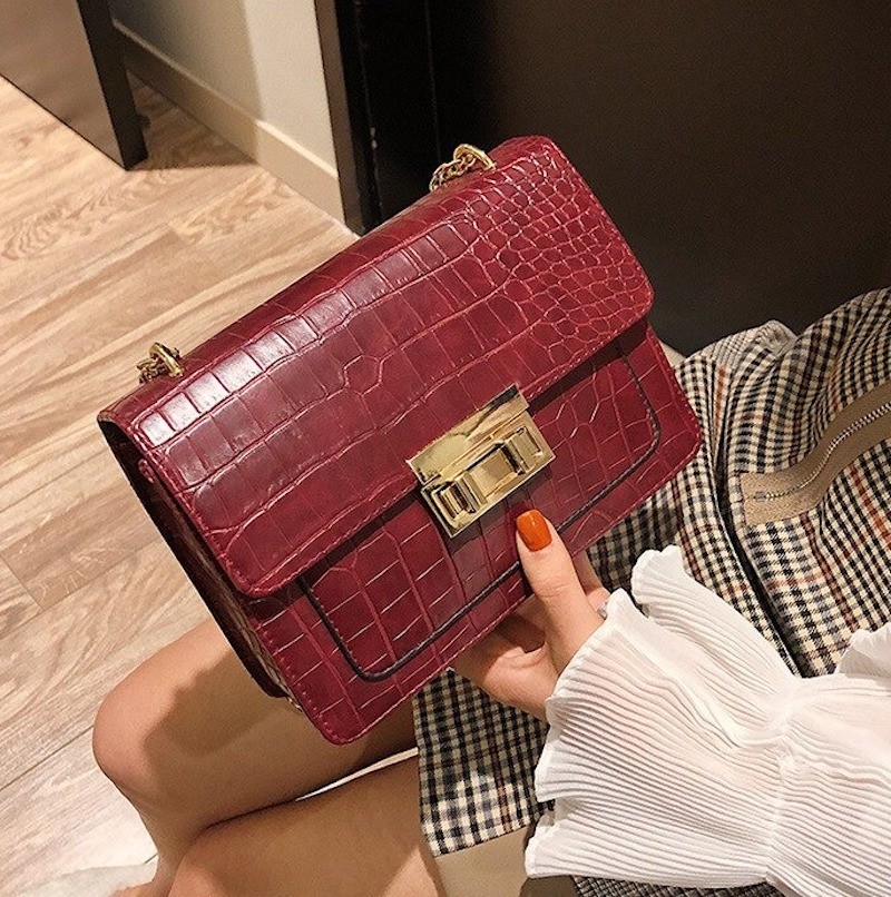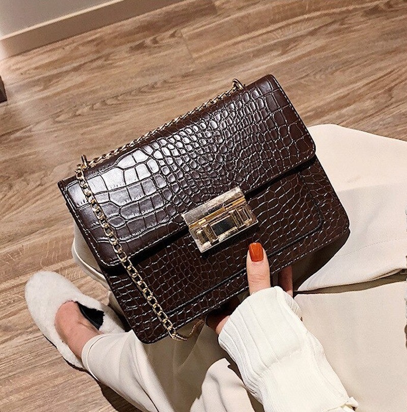 Bolsa de Senhora com Padrão de Pele de Cobra