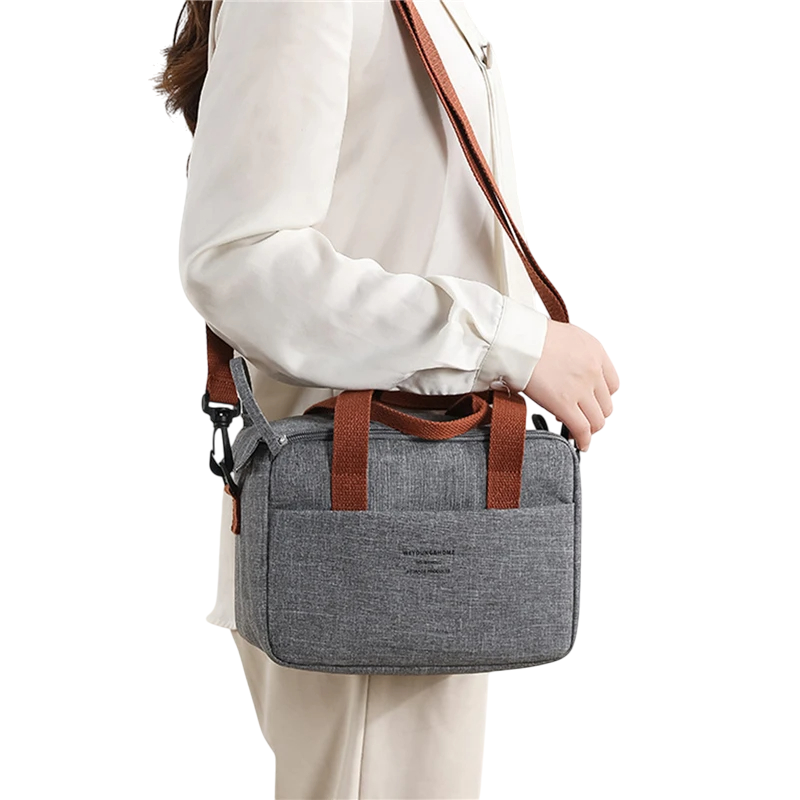 Bolsa térmica com compartimentos 23x13x17 cm Cor neutra Bolsa de almoço isolante com fecho Zipper Bolsa de lanche portátil Pequena bolsa para comida e bebidas