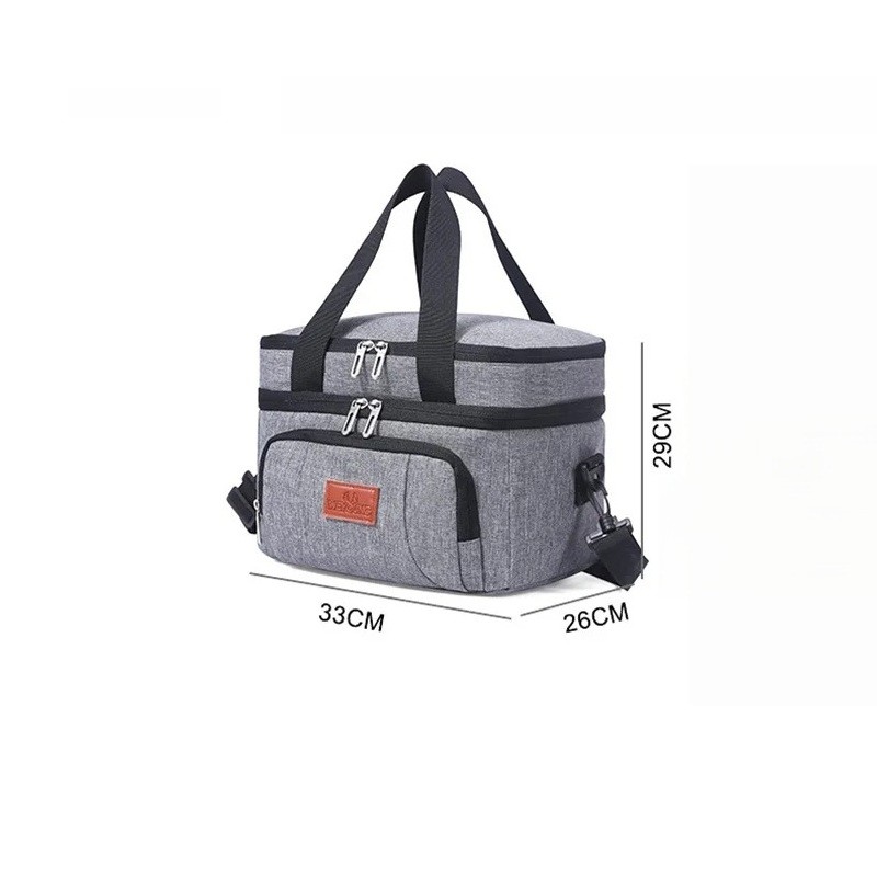 Página inicial Página inicial Desporto e outdoor Camping e outdoor Acessórios de viagem Bolsa térmica de duas camadas 29 x 33 x 26 cm Bolsa de refrigeração de grande capacidade para alimentos Bolsa de almoço de dois andares Cores neutras Bolsa isolada com espaço de armazenamento