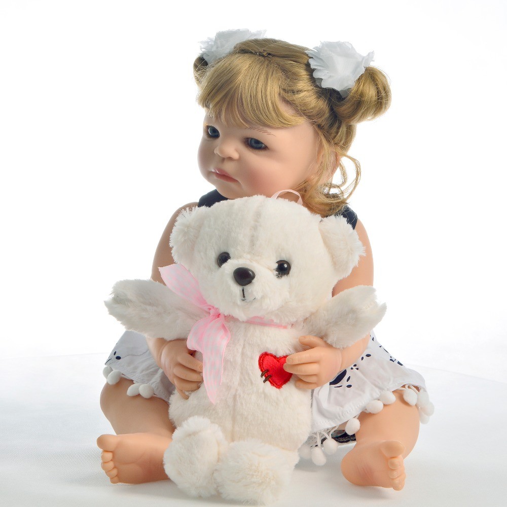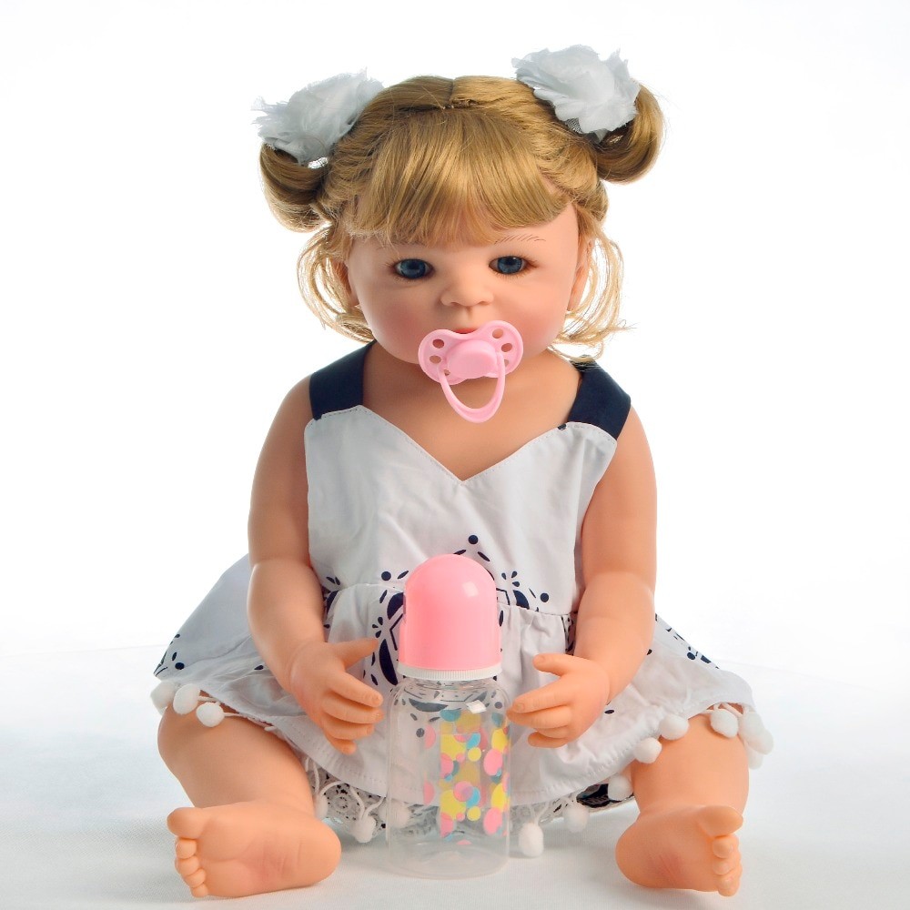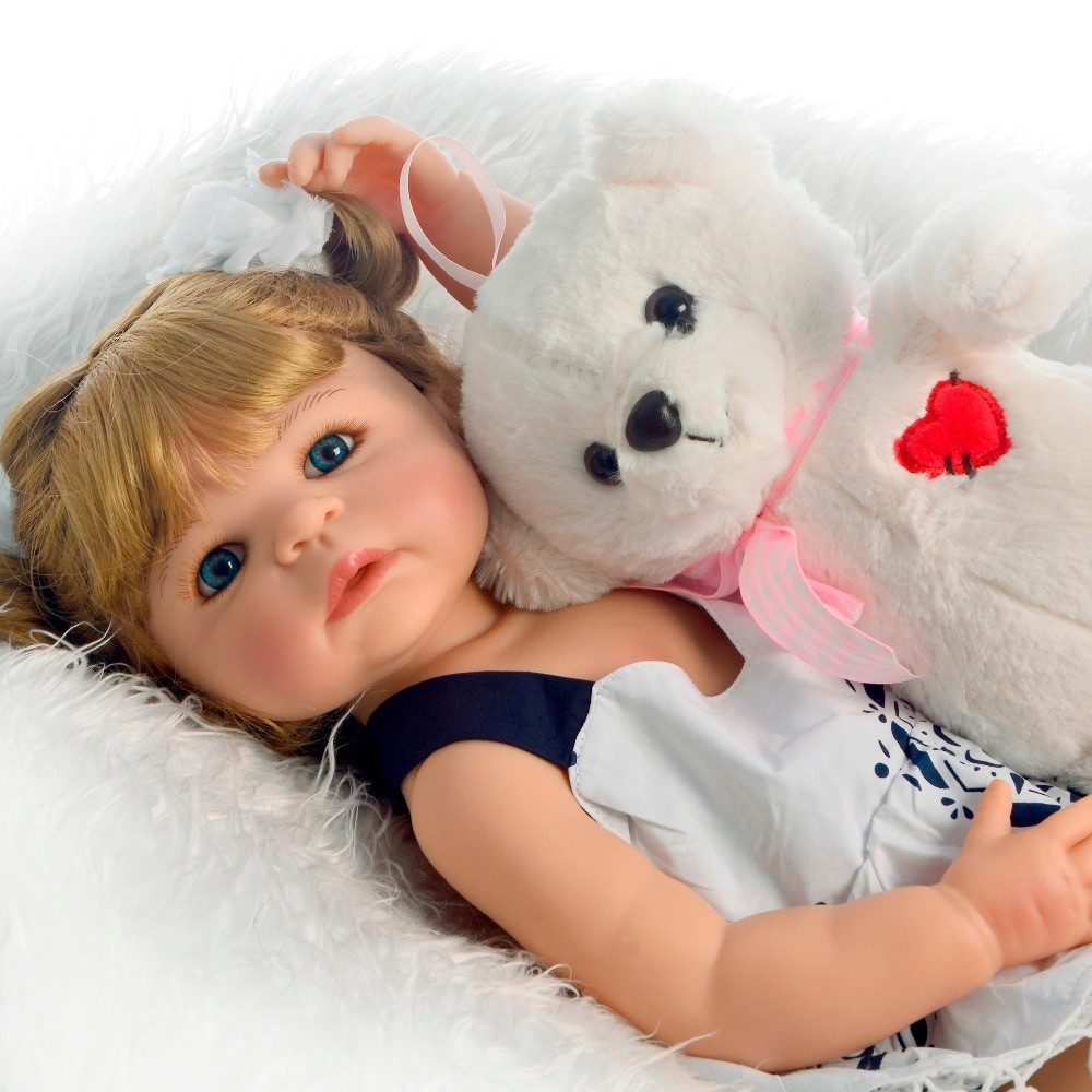 Boneca de silicone com cabelos de rabo de cavalo 55 cm
