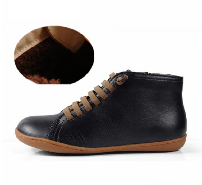 Estas botas de cano baixo vão aquecer os seus pés nos dias frios. As botas têm um forro quente em pelúcia.