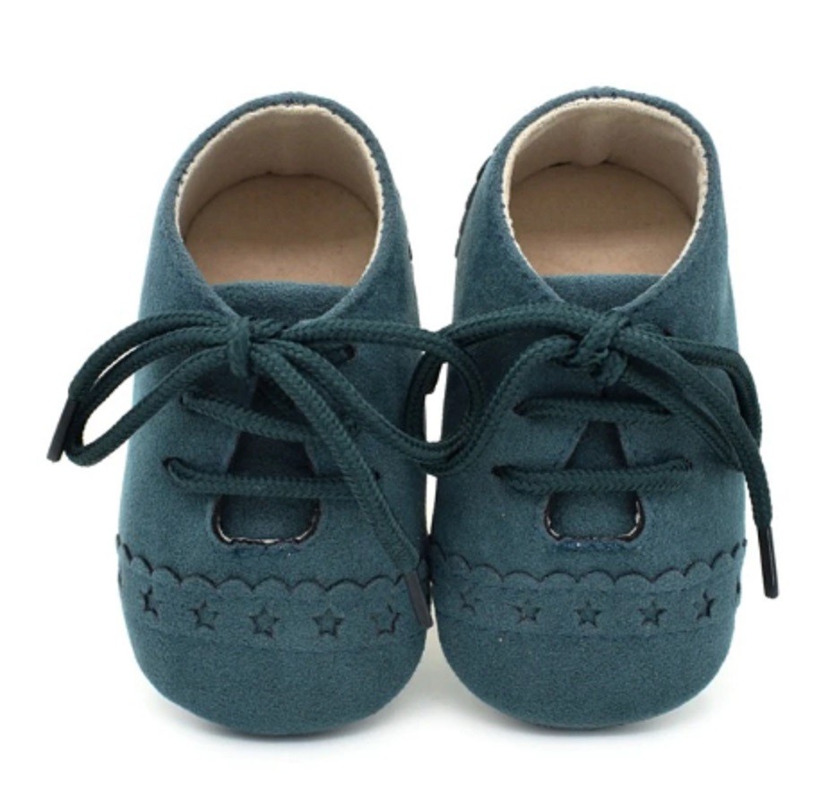 Botas de couro para crianças com atacadores são adequadas para os pezinhos mais pequenos no carrinho como complemento para a roupa.
