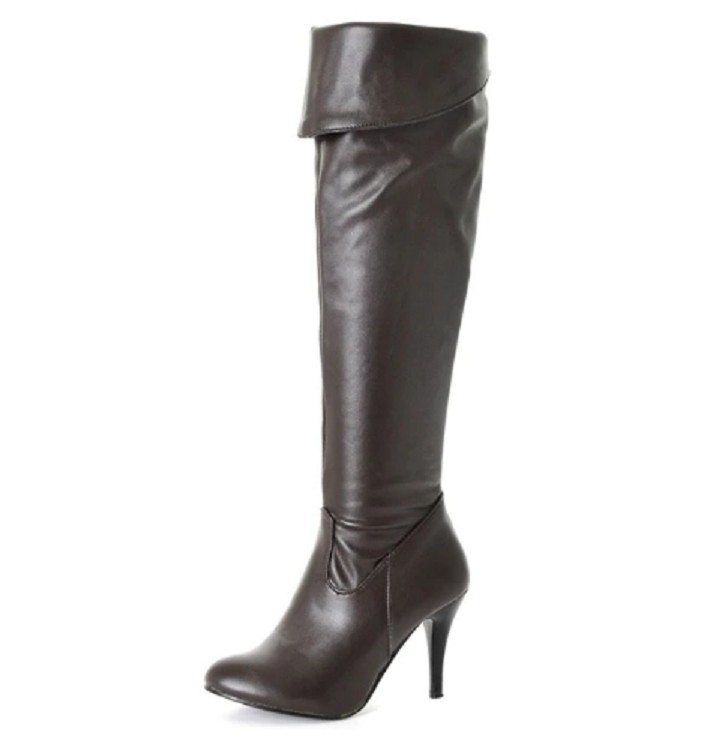 Estas botas de couro com salto agulha vão ficar-lhe bem.