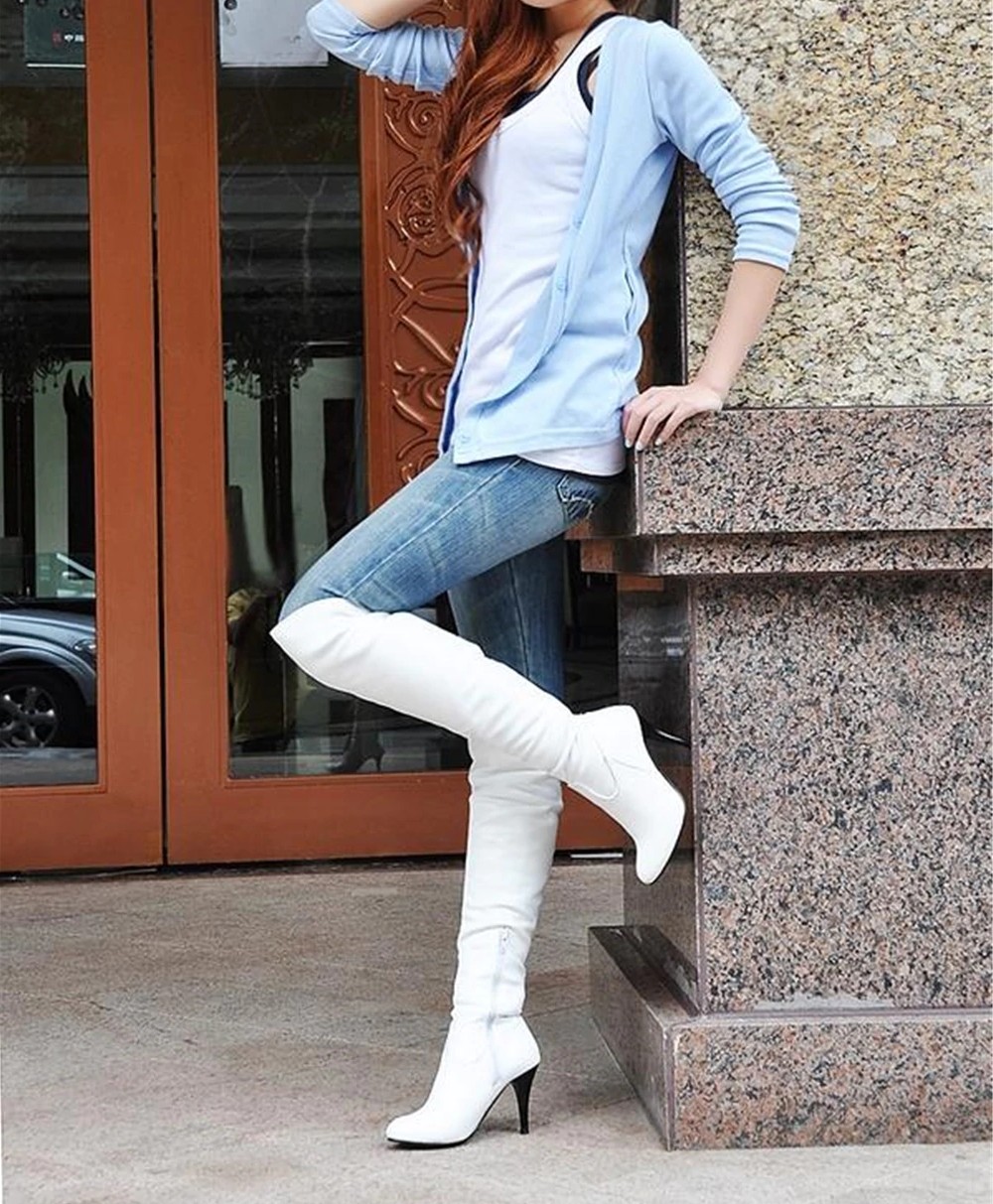 Página inicial Página inicial Calçado Calçado de mulher Botas de cano alto de mulher Botas de couro para senhora com salto agulha J1723