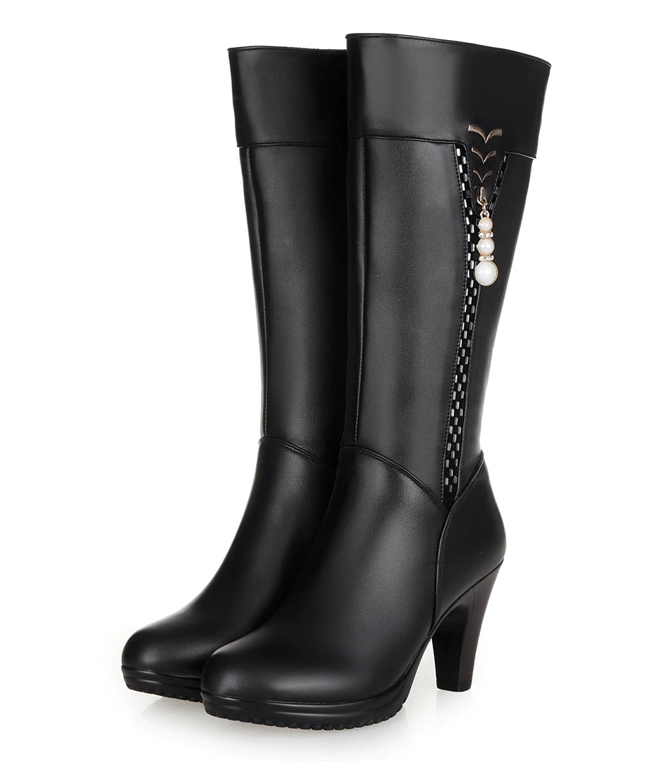 Estas botas com lã vão aquecê-lo lindamente. As botas estão adornadas com pérolas.