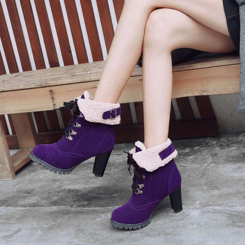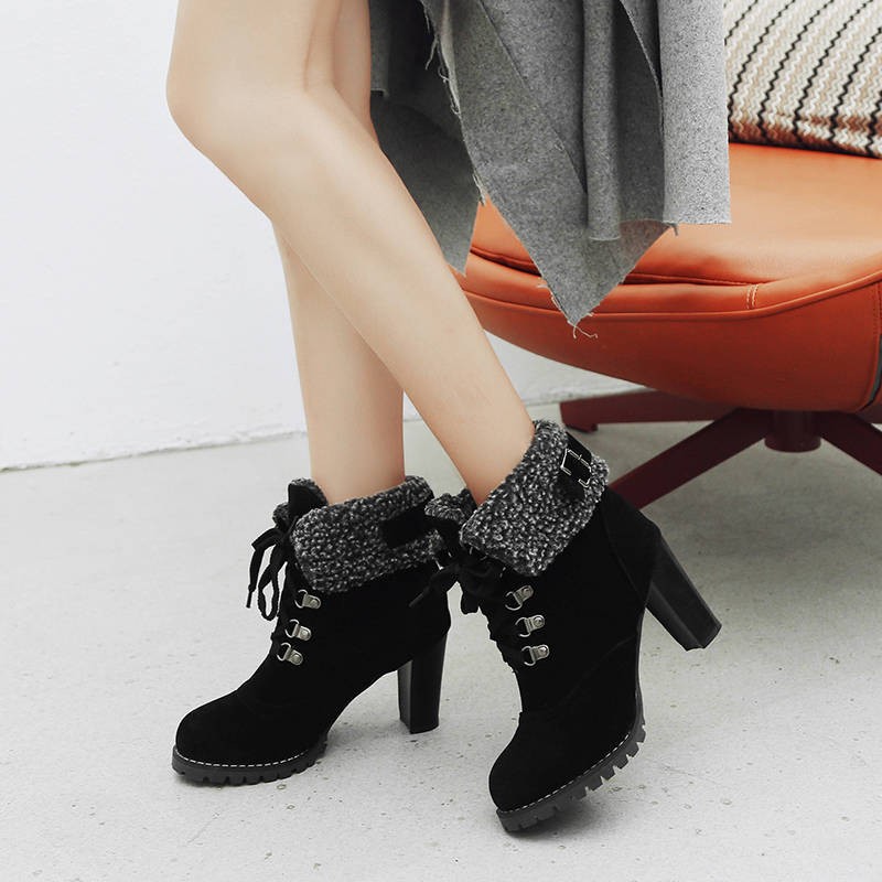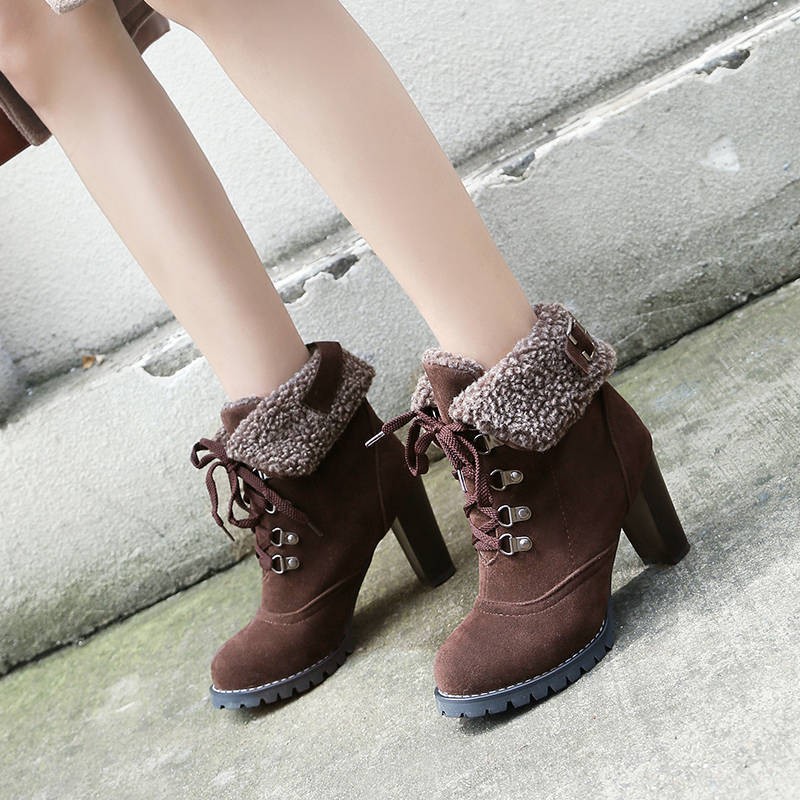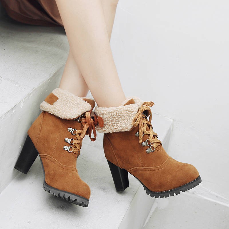 Página inicial Página inicial Calçado Calçado de mulher Botas de inverno de mulher Botas de Inverno Femininas com Forro em Pelo e Salto J837