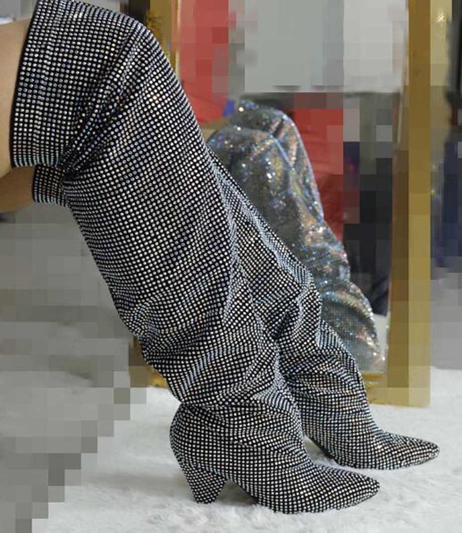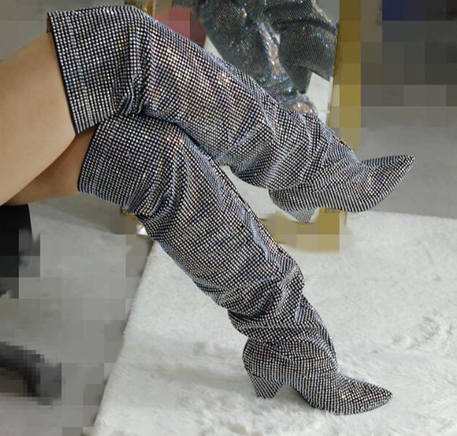Página inicial Página inicial Calçado Calçado de mulher Botas de cano alto de mulher Botas de senhora estilosas com brilhantes J1165