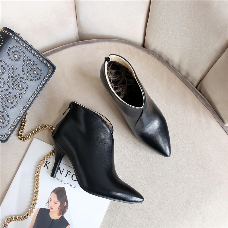 Estas botas de tornozelo com salto agulha são ideais para várias reuniões.