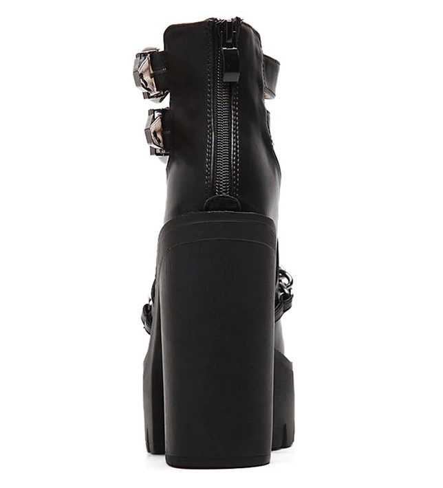 Estas botas de tornozelo com plataforma e corrente decorativa na cor preta vão conquistar o seu coração. As botas são fabricadas com material de qualidade.