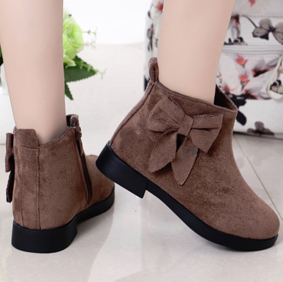 Botas de tornozelo para rapariga decoradas com laço são adequadas para saias e calças.