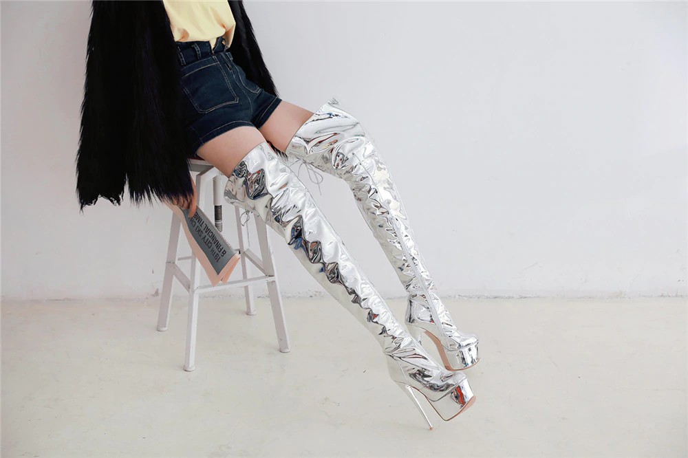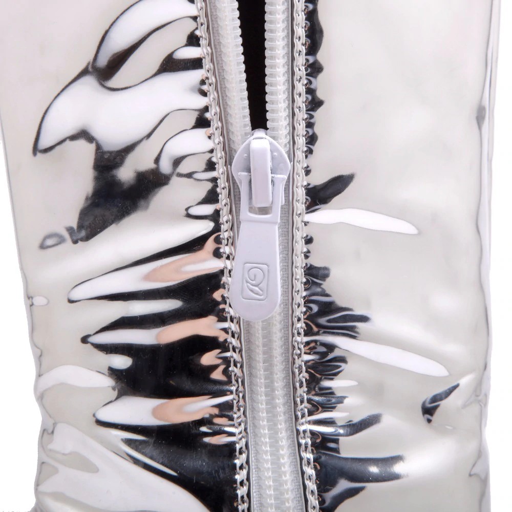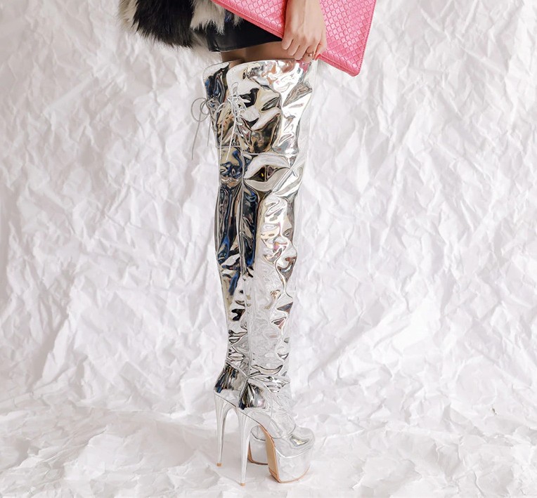 Página inicial Página inicial Calçado Calçado de mulher Botas de cano alto de mulher Botas prateadas acima do joelho para senhora J538