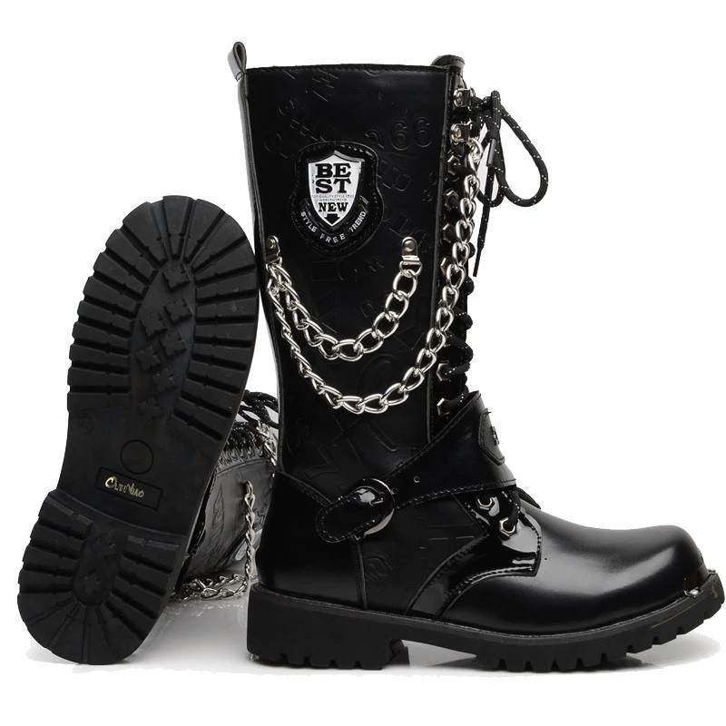 Botas punk masculinas com corrente