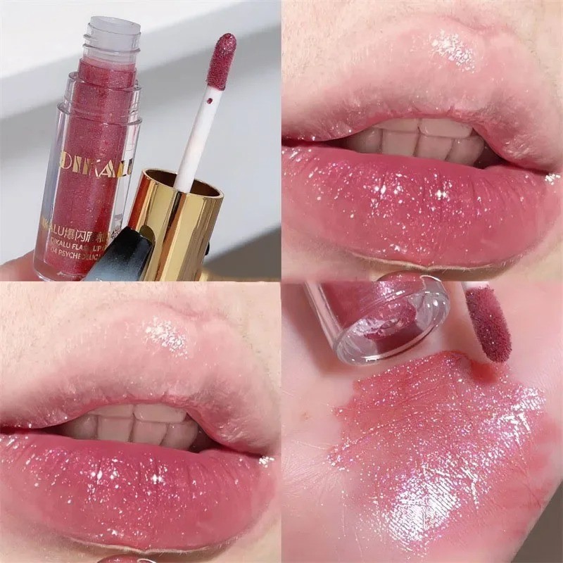 Brilho labial hidratante duradouro e cintilante para lábios bonitos e cuidados com um brilho deslumbrante. Descrição completa