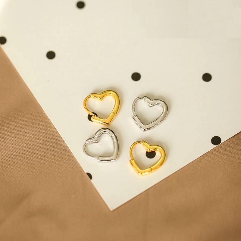 Brincos circulares em forma de coração para mulher