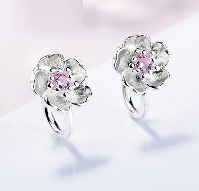 Brincos circulares femininos com flor