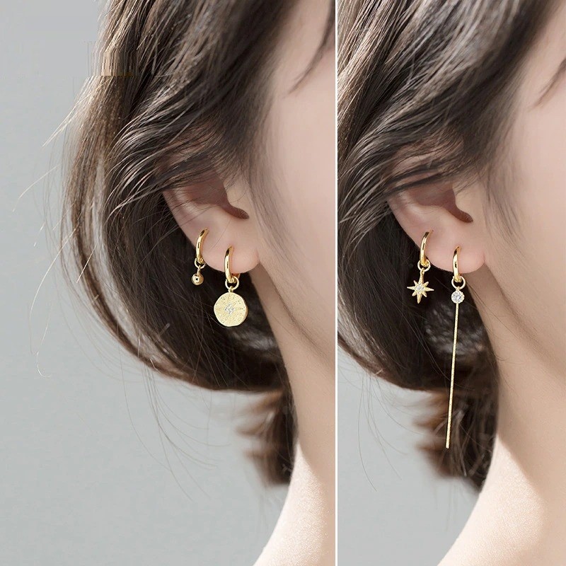 Brincos circulares femininos com pendente G541