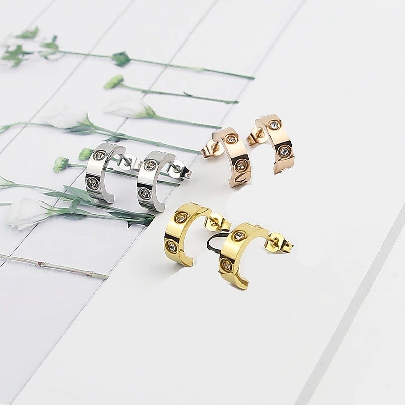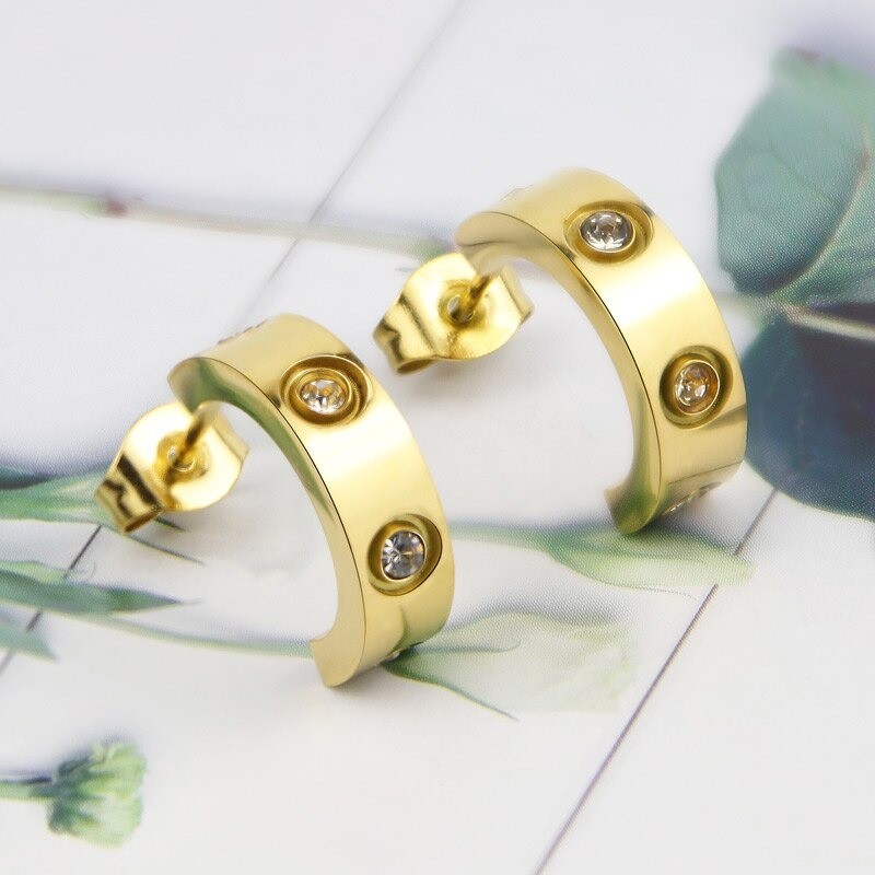 Brincos circulares femininos com zircões G648