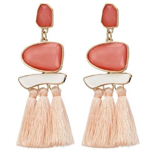 Tem uma preferência por pedras coloridas e franjas? Então estes brincos com pedras e franjas são perfeitos para si!
