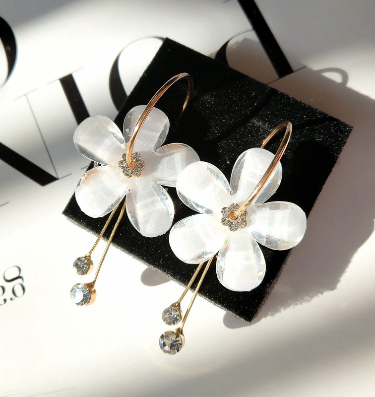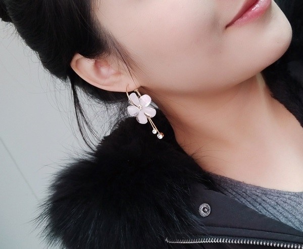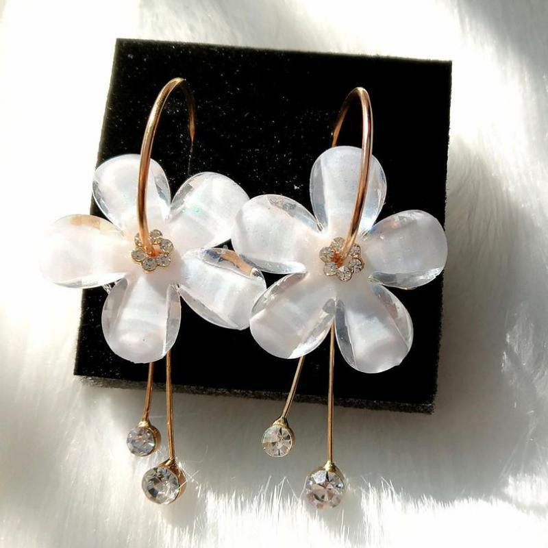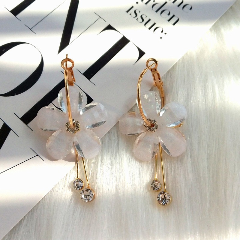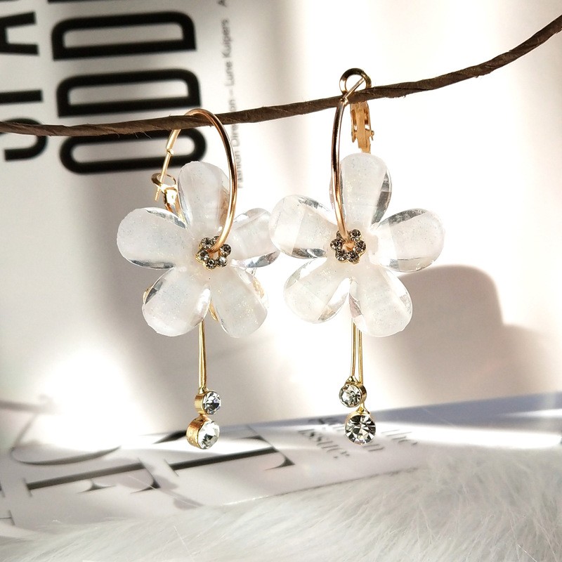Temos para si brincos de argola com flor.