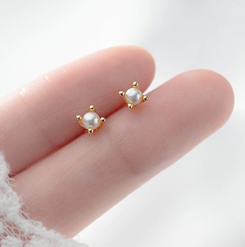 Brincos de botão para senhora com pérola