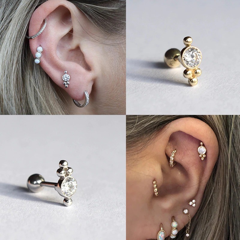 Brincos de pressão femininos com zircónias