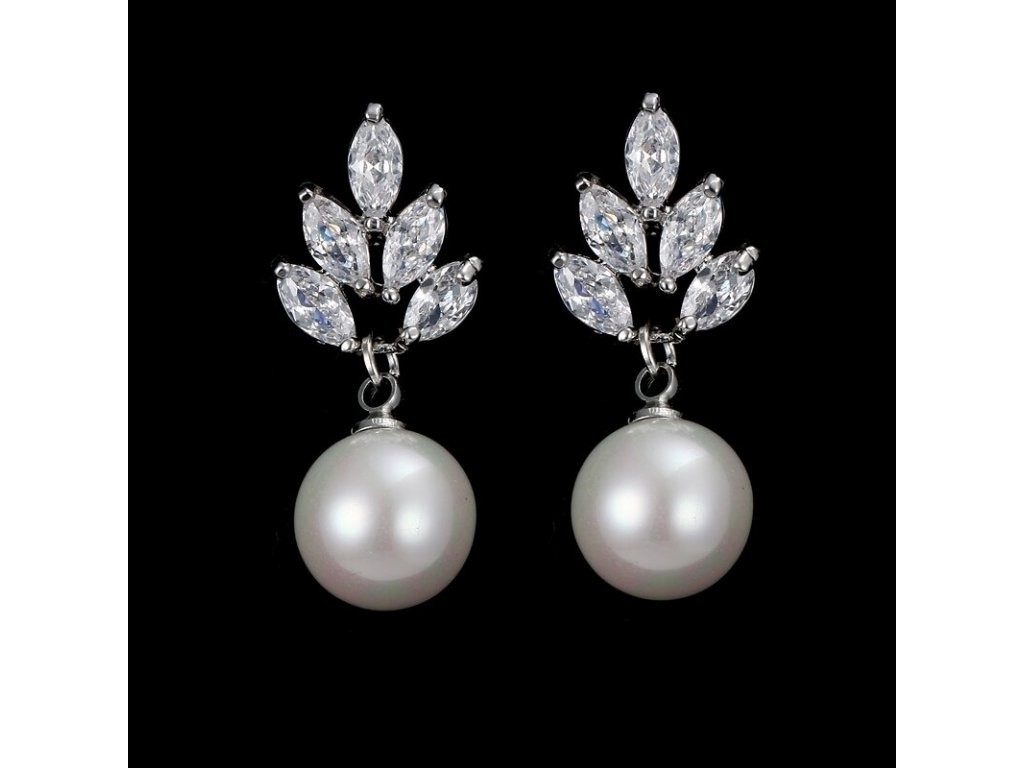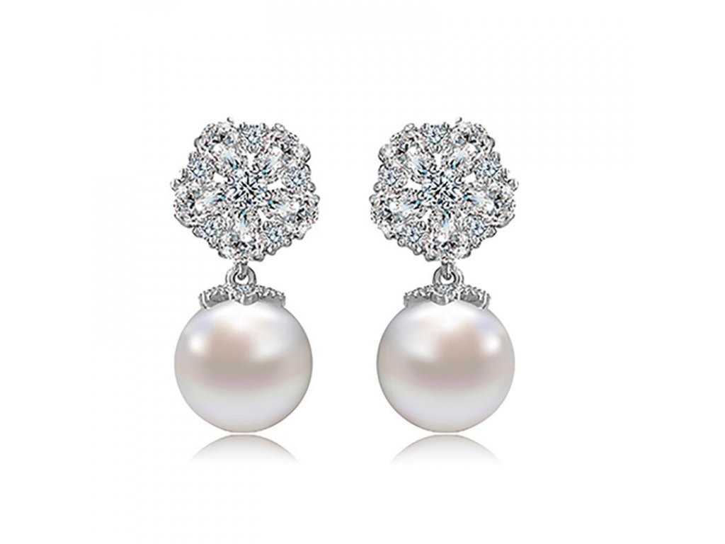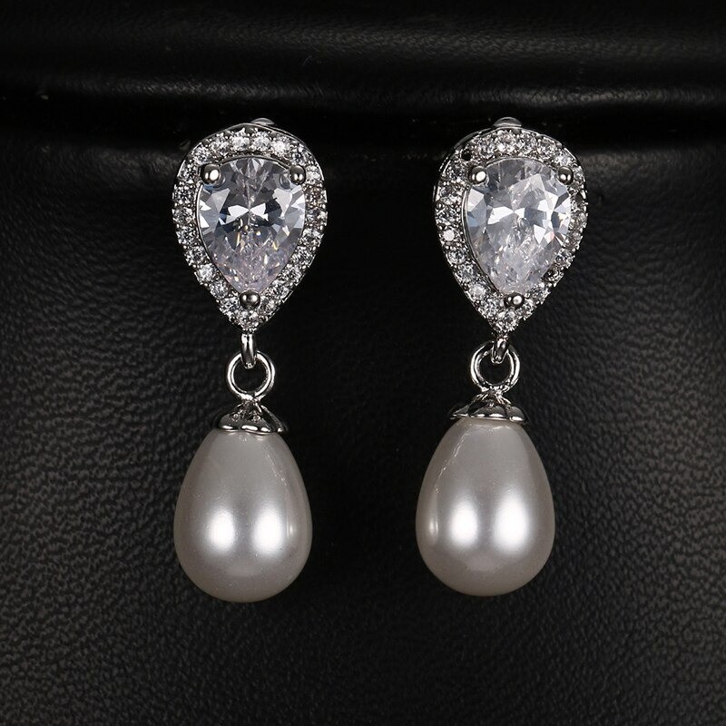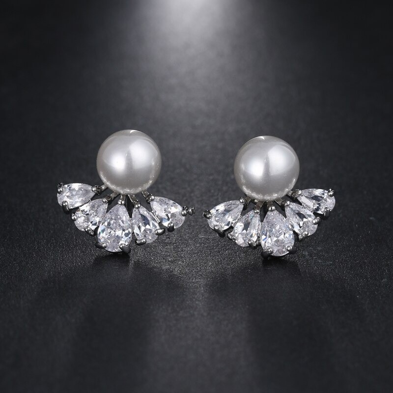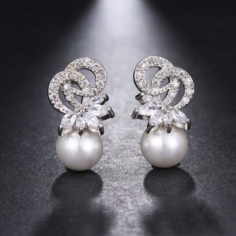 Brincos femininos com pérolas e zircónias
