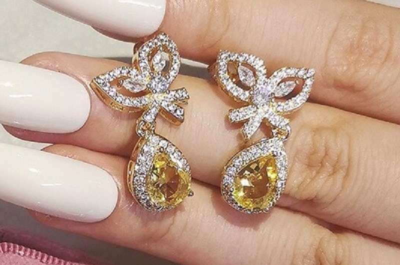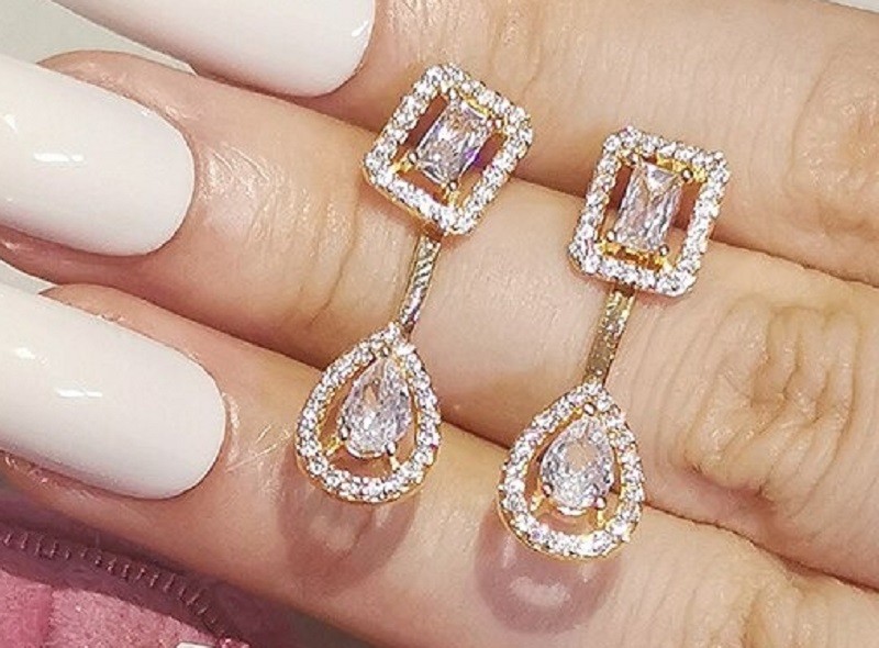 Brincos femininos com zircónios